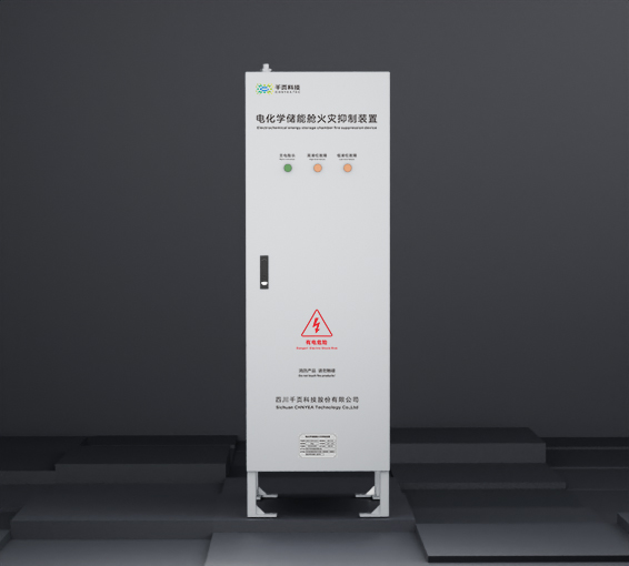 电化学储能舱火灾抑制装置主要由机柜柜体、电机泵组、灭火剂箱体、管路组件、控制部件、备用电源等组成,适用于20尺或40尺预制舱式磷酸铁锂储能系统的火灾防护及舱内电池热失控的抑制。